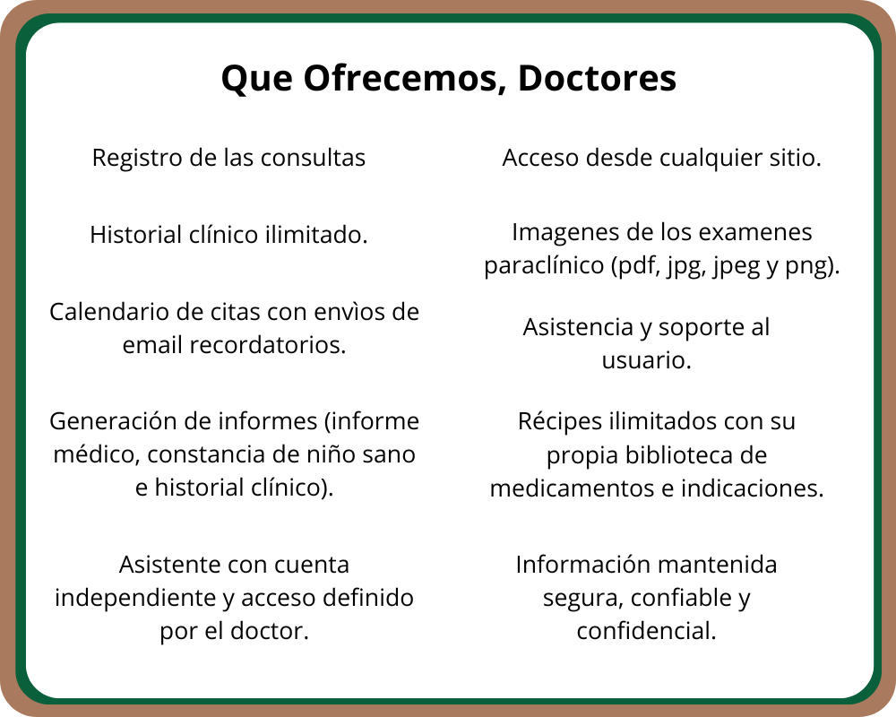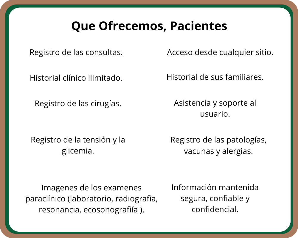 Mantenemos relaciones con doctores del ramo de la medicina, lo que nos ha permitido desarrollar la herramienta Su Registro Médico, acorde con los requerimientos y necesidades demandadas, para llevar de manera digital y en la web el registro de las historias médicas.